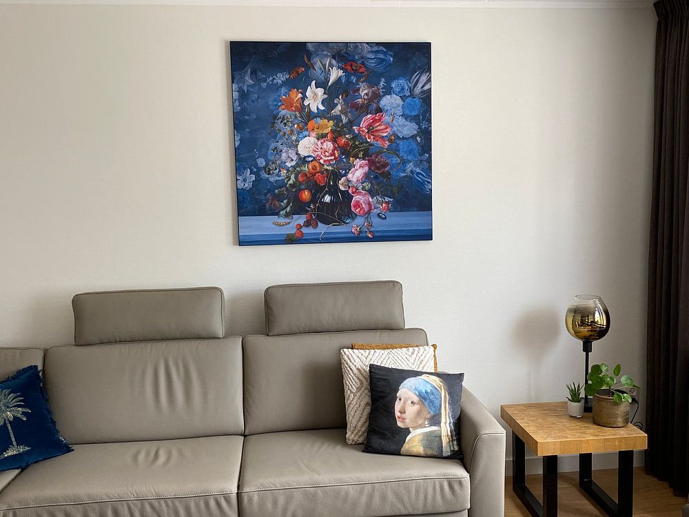 Portrait formats draw the eye upward and work beautifully in narrow wall spaces like hallways or beside doorways. They also add vertical balance when hung above console tables or sideboards. If you're looking for a striking example with depth and detail, Meisje met de Parel – The almost Black & White Edition creates a calm focal point in transitional spaces.