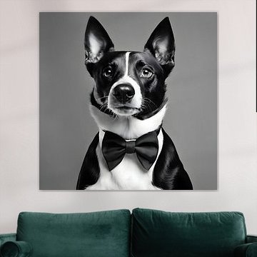 Dog artwork comes to life in portrait, square, and landscape formats. Portrait pieces work beautifully above narrow console tables in hallways or beside doorways, drawing the eye upward and adding character to transitional spaces. Square formats suit dining areas and home offices, where balanced proportions create a calm focal point. Choose landscape orientation when you want to fill the wall above a sofa or sideboard, especially in living rooms where horizontal lines complement the furniture beneath.