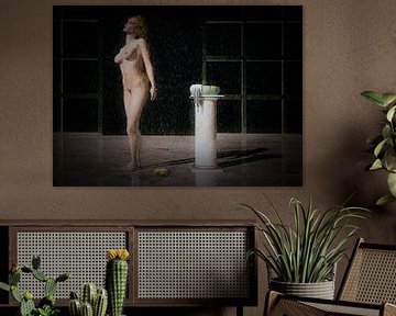 Sign, picturesque work of naked long-haired woman with flowers by Cor Heijnen