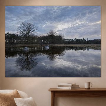 Drenthe's tranquil landscapes bring natural calm into your home. The region's heathlands, ancient hunebeds, and grazing sheep create timeless scenes that resonate with peaceful living. These artworks capture soft morning mist, golden sunrises, and weathered trees - visual qualities that suit minimalist and rustic interiors beautifully. Works like sunrise in Drenthe showcase the gentle atmosphere Drenthe is known for, where warm earth tones and sage greens blend effortlessly with natural textures.