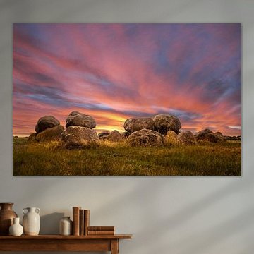 Drenthe's tranquil landscapes bring natural calm into your home. The region's heathlands, ancient hunebeds, and grazing sheep create timeless scenes that resonate with peaceful living. These artworks capture soft morning mist, golden sunrises, and weathered trees - visual qualities that suit minimalist and rustic interiors beautifully. Works like sunrise in Drenthe showcase the gentle atmosphere Drenthe is known for, where warm earth tones and sage greens blend effortlessly with natural textures.