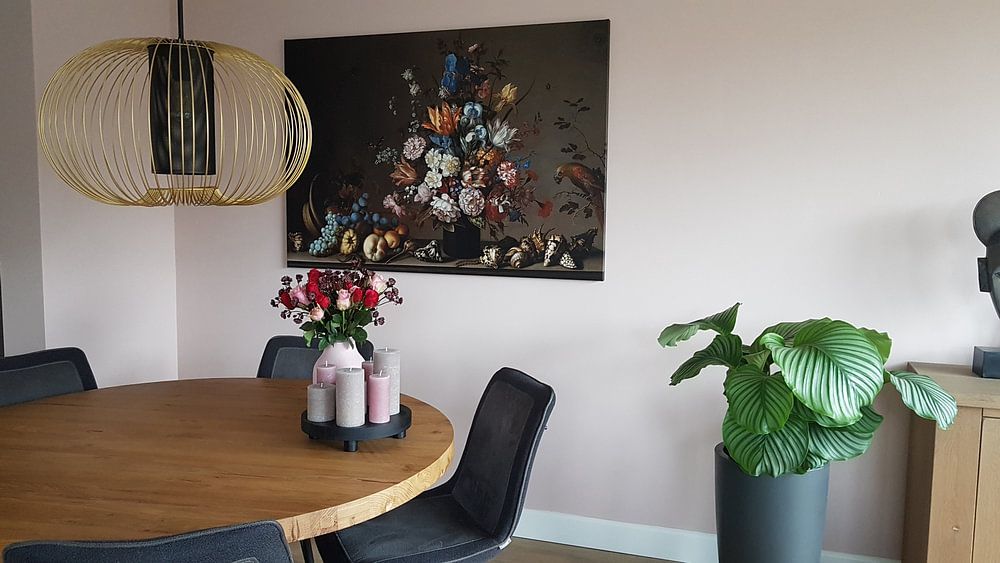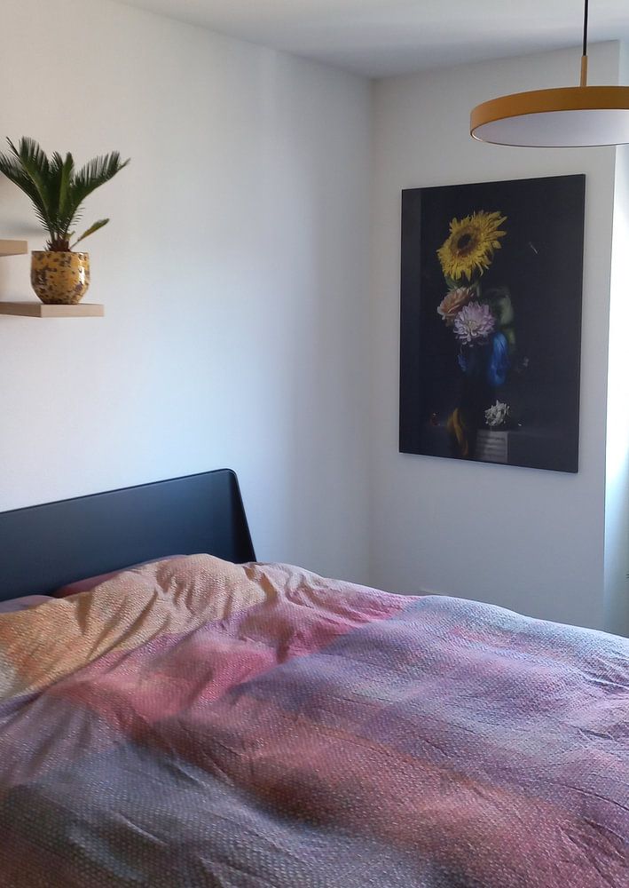 These artworks feature intricate botanical details and soft color palettes. They show up best against light, neutral walls in cream, white, or soft grey. The delicate features and rosy tones in Flowers on my mind (no.2025-01) need a calm backdrop to let the vibrant arrangement take center stage.