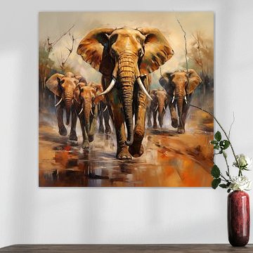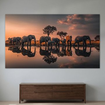 Give the room a wild but sweet touch with our elephant wall art collection. You can buy an elephant painting from us in different styles and colours. Think of a trendy black and white elephant poster. Or buy geometric elephant wall art on canvas, poster or HD metal. You can also find photo art of the giant elephants, which can be printed on acrylic glass for extra depth and perspective. Buy elephant wall art in your preferred sizes, so it will perfectly fit on your wall.