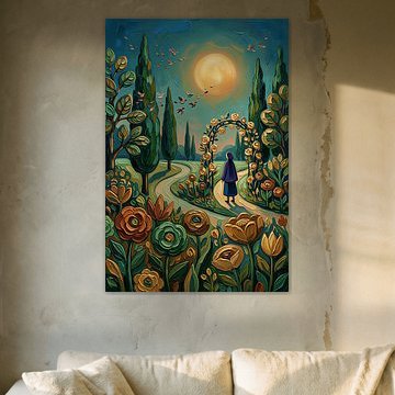 Enchanting and magical art awakens wonder and curiosity in everyday life. These artworks blend dreamy pastels with rich golds, earthy tones with ethereal blues, while whimsical characters and mystical nature scenes create a calm yet playful atmosphere. The collection suits interiors that celebrate imagination - think soft bohemian spaces or serene modern rooms where storytelling matters, as seen in Marvel with its glowing, fairy-tale quality.