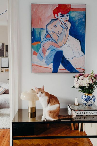 Strong, saturated hues make a striking statement when placed against calm, neutral surroundings. If your space features beige, taupe, or soft grey walls, let vibrant colors take center stage. The vivid blue tones in Henri Matisse. Blue nude create beautiful contrast in rooms with warm neutral furnishings and natural wood accents.