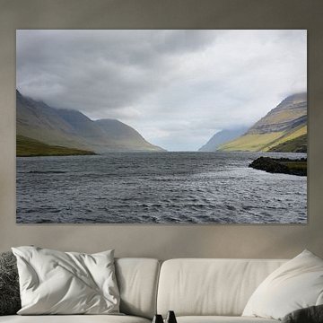 Fjord artworks bring together blue, grey, and teal tones that suit Scandinavian and minimalist interiors perfectly. Pair the cooler blues and greys with light wood furniture and white walls for a clean, Nordic look. The mauve and olive green accents add subtle warmth without disrupting the calm palette. In a minimalist space, choose one larger fjord piece rather than multiple smaller ones - this keeps the visual focus clear and allows the powerful, mysterious mood of the landscape to anchor the room.