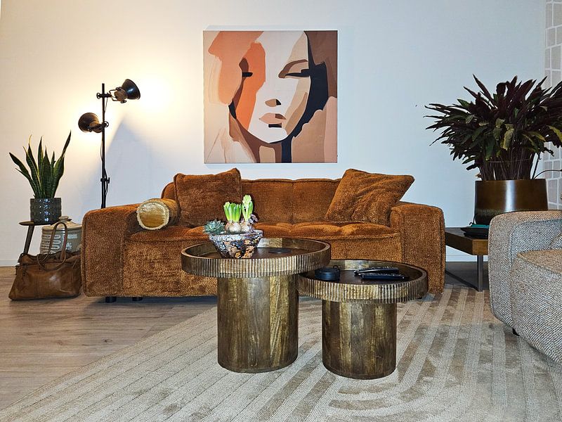 Flexa 2024 fits naturally into Scandinavian and minimalist interiors, where its muted colour palette can shine without competing for attention. The taupe and beige tones work beautifully against white or light grey walls, while the sage green and mauve accents add subtle warmth to pared-back spaces. In a Scandinavian setting, combine these artworks with light wood furniture and simple textiles to maintain the clean, uncluttered aesthetic. For a minimalist approach, choose one statement piece in ArtFrame™ with a white or silver frame to keep the focus clear and intentional.
