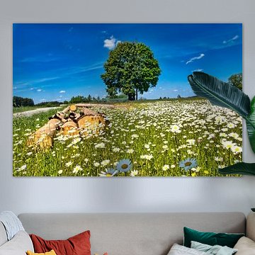 Choose Poster and you benefit from prints that capture every detail of these natural landscapes. The UV-resistant inks ensure the olive greens, blues, and mauve tones in flower fields artworks stay vibrant year after year, even in bright rooms. This matters especially for nature photography and painted scenes, where color accuracy brings out the calm and joyful atmosphere. The thick 260-gram satin photo paper adds a luxurious feel that suits both photography and digital art styles. You can frame your flower fields print yourself or select from our optional frames in black, white, natural, dark brown, or aluminum to match your interior.