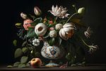 Delft blue vase with flowers still life by Vlindertuin-Art on canvas