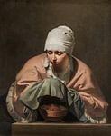 A young woman warms her hands over a fire test, Caesar Boëtius van Everdingen on canvas