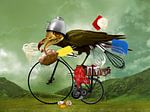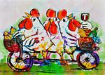 Chickens on the Tandem by Vrolijk Schilderij on ArtFrame