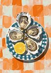 Oysters on orange tablecloth by studio snik. on ArtFrame