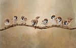 Birds On Branch Artwork With Eight Sparrows by Diana van Tankeren on canvas