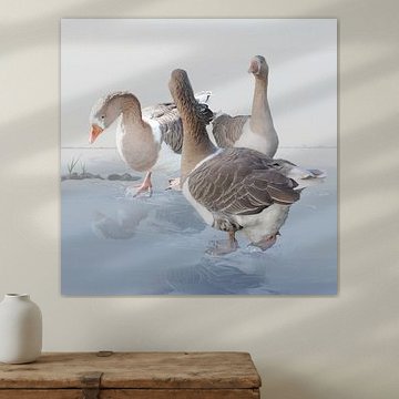 Geese in flight capture moments of freedom and natural grace. Whether emerging through morning mist or soaring against vivid skies, these artworks bring serene energy to your space. From impressionist landscapes to Japanese-inspired designs, geese art suits modern and classic interiors alike - works like Geese take off above the Drentsche Aa on a beautiful late summer morning. There is a beautiful mist showcase the quiet beauty of misty waterscapes, while bold compositions add striking focal points.