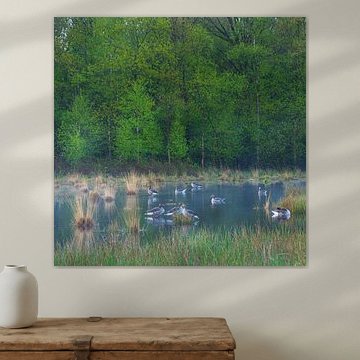Explore the natural grace of geese with our new collection of artworks. Created by skilled image makers, this series highlights elegant geese in various landscapes. Each piece, available on materials such as canvas, ArtFrame, poster, and aluminum dibond, makes a stylish addition to your interior. Ideal for hanging on the wall in both home and professional spaces, these artworks bring a sense of calm and natural beauty. Let the serene presence of geese inspire you and enrich your living or workspace with this subtle and refined art collection.