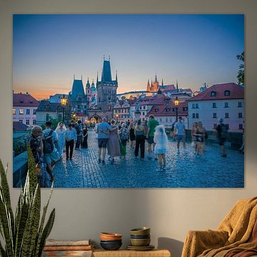 Prague - lively Charles Bridge in the evening by t.ART