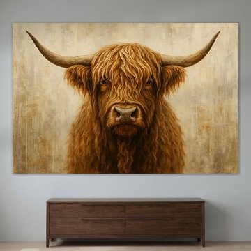 Want to buy majestic highland cow paintings, wallpaper, or photo art? The highland cow wall art collection can be printed in several high-quality materials. Think of metal, aluminium, glass, or canvas. Create calmness in the room with wallpaper from a photo of a highland cow in nature. Or buy a robust highland cow portrait on metal. There is highland cow wall art available for every style and interior.
