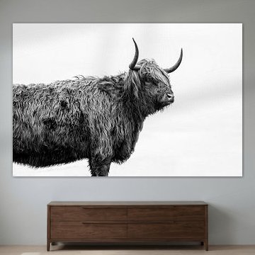 Want to buy majestic highland cow paintings, wallpaper, or photo art? The highland cow wall art collection can be printed in several high-quality materials. Think of metal, aluminium, glass, or canvas. Create calmness in the room with wallpaper from a photo of a highland cow in nature. Or buy a robust highland cow portrait on metal. There is highland cow wall art available for every style and interior.
