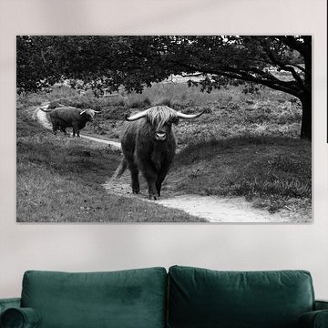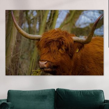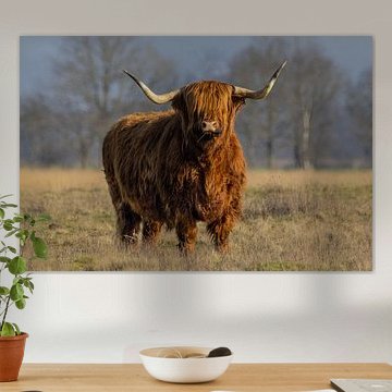 Want to buy majestic highland cow paintings, wallpaper, or photo art? The highland cow wall art collection can be printed in several high-quality materials. Think of metal, aluminium, glass, or canvas. Create calmness in the room with wallpaper from a photo of a highland cow in nature. Or buy a robust highland cow portrait on metal. There is highland cow wall art available for every style and interior.