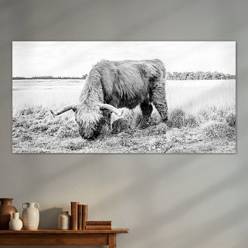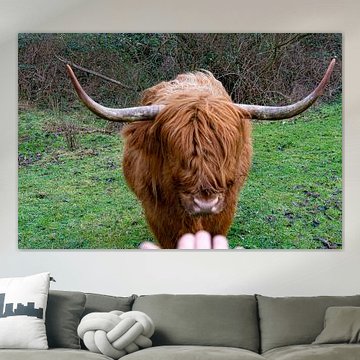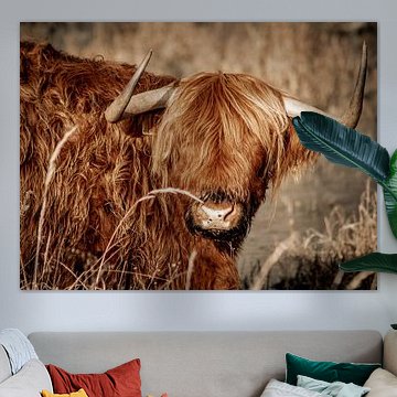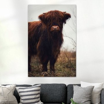 Want to buy majestic highland cow paintings, wallpaper, or photo art? The highland cow wall art collection can be printed in several high-quality materials. Think of metal, aluminium, glass, or canvas. Create calmness in the room with wallpaper from a photo of a highland cow in nature. Or buy a robust highland cow portrait on metal. There is highland cow wall art available for every style and interior.