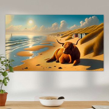 Want to buy majestic highland cow paintings, wallpaper, or photo art? The highland cow wall art collection can be printed in several high-quality materials. Think of metal, aluminium, glass, or canvas. Create calmness in the room with wallpaper from a photo of a highland cow in nature. Or buy a robust highland cow portrait on metal. There is highland cow wall art available for every style and interior.