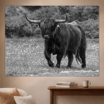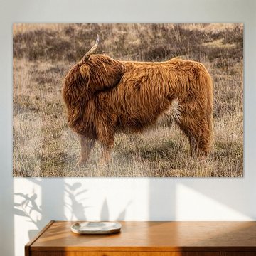 Want to buy majestic highland cow paintings, wallpaper, or photo art? The highland cow wall art collection can be printed in several high-quality materials. Think of metal, aluminium, glass, or canvas. Create calmness in the room with wallpaper from a photo of a highland cow in nature. Or buy a robust highland cow portrait on metal. There is highland cow wall art available for every style and interior.