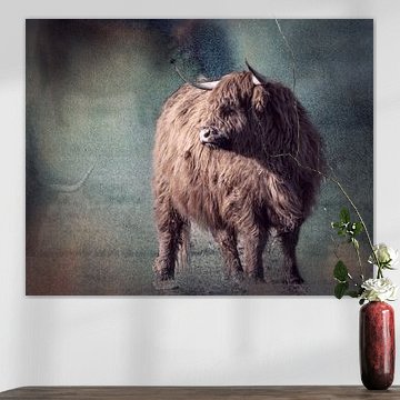 Want to buy majestic highland cow paintings, wallpaper, or photo art? The highland cow wall art collection can be printed in several high-quality materials. Think of metal, aluminium, glass, or canvas. Create calmness in the room with wallpaper from a photo of a highland cow in nature. Or buy a robust highland cow portrait on metal. There is highland cow wall art available for every style and interior.