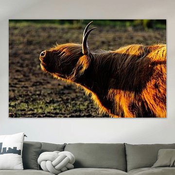 Want to buy majestic highland cow paintings, wallpaper, or photo art? The highland cow wall art collection can be printed in several high-quality materials. Think of metal, aluminium, glass, or canvas. Create calmness in the room with wallpaper from a photo of a highland cow in nature. Or buy a robust highland cow portrait on metal. There is highland cow wall art available for every style and interior.