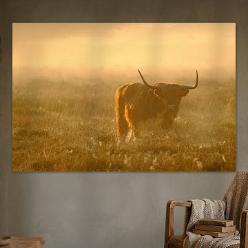 Want to buy majestic highland cow paintings, wallpaper, or photo art? The highland cow wall art collection can be printed in several high-quality materials. Think of metal, aluminium, glass, or canvas. Create calmness in the room with wallpaper from a photo of a highland cow in nature. Or buy a robust highland cow portrait on metal. There is highland cow wall art available for every style and interior.