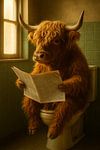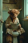 Shaggy highland cow reads newspaper on the toilet by Poster Art Shop on canvas