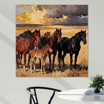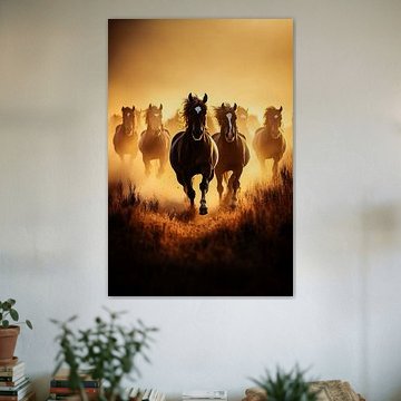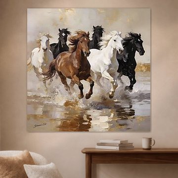 Ornate horses as wall art makes the room elegant and character. Buy a horse painting on large photo wallpaper to make a statement. Or buy horse art prints on canvas with a golden frame or as a glass painting. Our diverse wall art collection consists of paintings of horses on the beach, colourful horse paintings, modern abstract horse paintings and beautiful horse posters for the children's room.