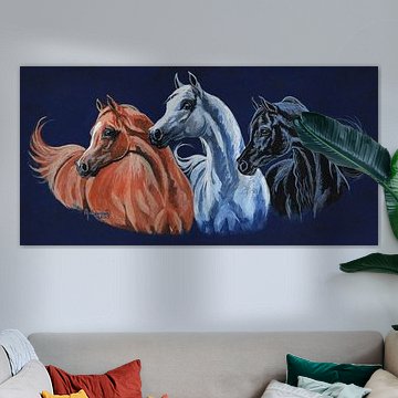 Ornate horses as wall art makes the room elegant and character. Buy a horse painting on large photo wallpaper to make a statement. Or buy horse art prints on canvas with a golden frame or as a glass painting. Our diverse wall art collection consists of paintings of horses on the beach, colourful horse paintings, modern abstract horse paintings and beautiful horse posters for the children's room.