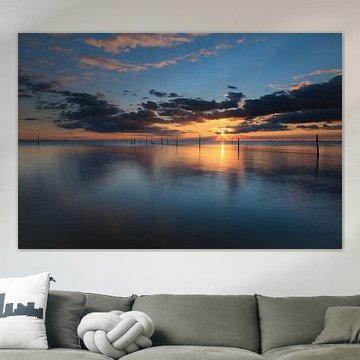 Both portrait and landscape formats are popular for IJsselmeer photography, and your choice depends on your wall space. Portrait formats suit narrow walls beside doorways or windows, while landscape formats fill horizontal spaces above sofas or sideboards. Choose the format that fits your available wall dimensions.