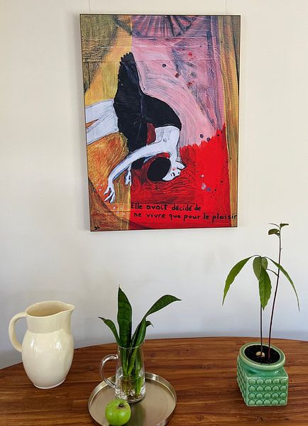 If your room features warm tones like terracotta, rust, or burnt orange, look for artworks that echo those shades. The tangerine and red tones in I'm on Fire pair naturally with wooden furniture, copper accessories, or ochre textiles to create a cohesive, energetic feel throughout the space.