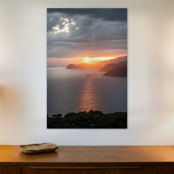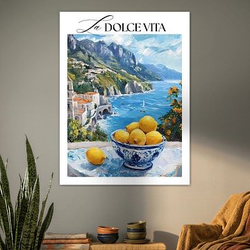 A striking scene draws the eye and sets the tone as soon as you step inside. The vibrant coastal journey depicted in Travel poster woman on the Amalfi coast, Italy works well in narrow spaces where a single artwork makes a confident first impression without competing for attention.