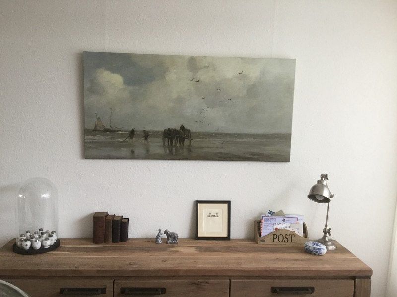 Muted tones and open compositions work beautifully in spaces where you want to encourage quiet focus. Position these artworks where natural light softens the scene - near a reading nook or above a sideboard. The overcast sky and coastal atmosphere in Jacob Maris - Fishing boat suits hallways and dining rooms particularly well.