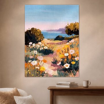 Joyful Moments brings together photography, painting, and digital art that share a vibrant yet calm energy. These artworks work beautifully on a gallery wall where you mix portrait, square, and landscape formats for visual variety. Pair joyful pieces with calmer artworks to create balance, or style them alongside green plants and natural textiles that echo the olive green and taupe tones in the collection. The blue and brown hues also complement warm wood furniture and ceramic accessories. Create a space that reflects your personality by mixing different techniques and moods into one cohesive display.