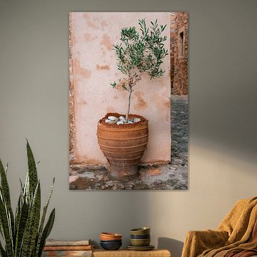Coffee table. Flower in vase still life. Caramel, almond and coffee colors. by Dina Dankers