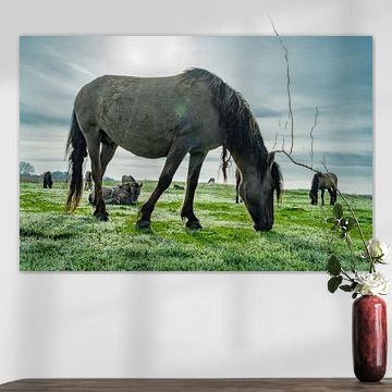This collection celebrates the wild beauty of Konik horses, captured by various artists. The artworks, ranging from paintings and photography to collages and digital art, showcase the sturdy build and natural elegance of these wild horses. The artists have focused on the natural colors and graceful movements of Konik horses in their natural habitat.