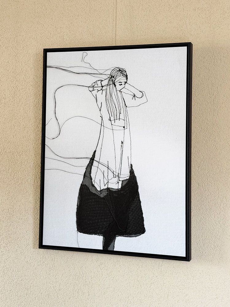 Basic looks striking in square format, which suits modern interiors and creates balanced focal points. Hang a square piece above a sideboard or console table where it can anchor the space without overwhelming it. Square artworks also work well in pairs or groups, making them ideal for symmetrical arrangements in dining rooms or hallways. If your wall is wide or sits above a sofa, consider a landscape format instead - it fills horizontal space more naturally and draws the eye across the room.