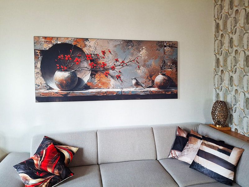 Basic brings together calm, vibrant, and dreamy moods that work beautifully across different rooms and décor styles. Pair these artworks with natural textures like linen cushions or woven baskets to echo the warm taupe and beige tones. For a layered gallery wall, combine several Basic pieces in different sizes - the earthy palette creates cohesion even when mixing formats. Add greenery or terracotta planters to draw out the bronze and brown hues. The collection's versatile mood means you can style it both minimally or abundantly, depending on your space and personal taste.