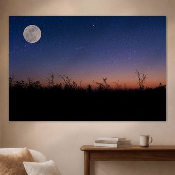 The moon is a popular space object. Buy an art print of the moon or go for an artistic painting. Want wall art in the kids' room? Then go for indoor wallpaper of the moon or a moon illustration poster. One thing is for sure; there are plenty of wall art prints of the moon. In the extensive moon art collection, you'll find a bit of everything: photography of the full moon, starry sky wallpaper or buy a photo print of the supermoon. Which moon is your favourite?