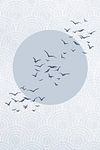 Customer photo: Japandi. Abstract landscape with pastel blue sun and birds on Japanese bullseye pattern by Dina Dankers, on canvas
