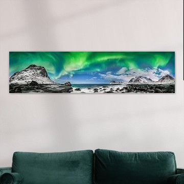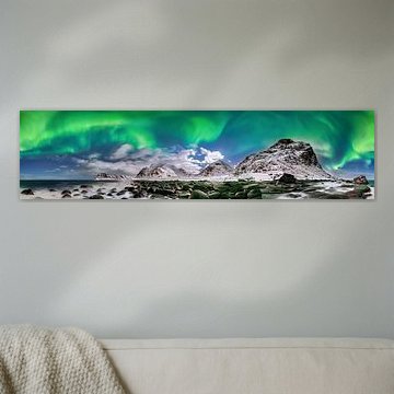 Northern Lights over the mountains at the Lofoten Islands in Nor by Sjoerd van der Wal Photography