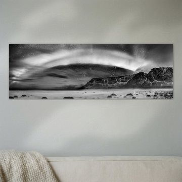 Northern Lights, polar light or Aurora Borealis in the night sky over the Lofoten islands in Norther by Sjoerd van der Wal Photography