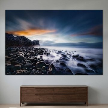 Sunset on the beach Uttakleiv on the Lofoten Islands in Norway. by Jos Pannekoek