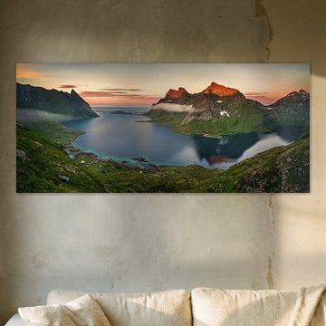 Buy a Norway photo on canvas or a Norway landscape glass painting? Bring the Norwegian atmosphere, fjords, mountains and more natural beauty into your home with a print of Norway. From sunrises and Northern Lights and colourful cities to snow-capped mountain peaks, buying a Norway painting is always a good idea. You can order your favourite Scandinavian art on canvas, glass, metal or other high-quality material, in any size.