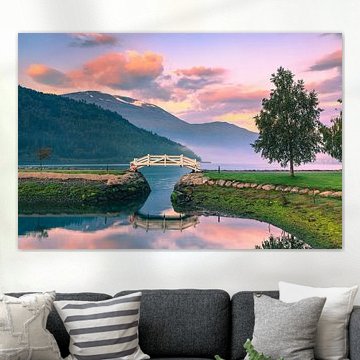 Buy a Norway photo on canvas or a Norway landscape glass painting? Bring the Norwegian atmosphere, fjords, mountains and more natural beauty into your home with a print of Norway. From sunrises and Northern Lights and colourful cities to snow-capped mountain peaks, buying a Norway painting is always a good idea. You can order your favourite Scandinavian art on canvas, glass, metal or other high-quality material, in any size.