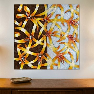 The works in our pattern collection all have their own pattern. From small and subtle to large and striking, but always motifs that repeat. Buy a patterned artwork is beautiful as a painting on the wall, but you can also buy it as colourful photo wallpaper. Buy colourful patterned wall art to brighten up your living room, bedroom or office. Success guaranteed!