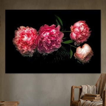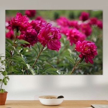 The Peony is a flower found across the world, so it picked up many meanings across cultures, for example in Asia it represents wealth and prosperity. Do you want to bring in this majestic flower into your interior through wall art? Check out our Peony wall art collection, buy your favourite. Buy a photo print of the flower in nature on acrylic, or a painting of a bouquet on canvas, poster, or our other materials